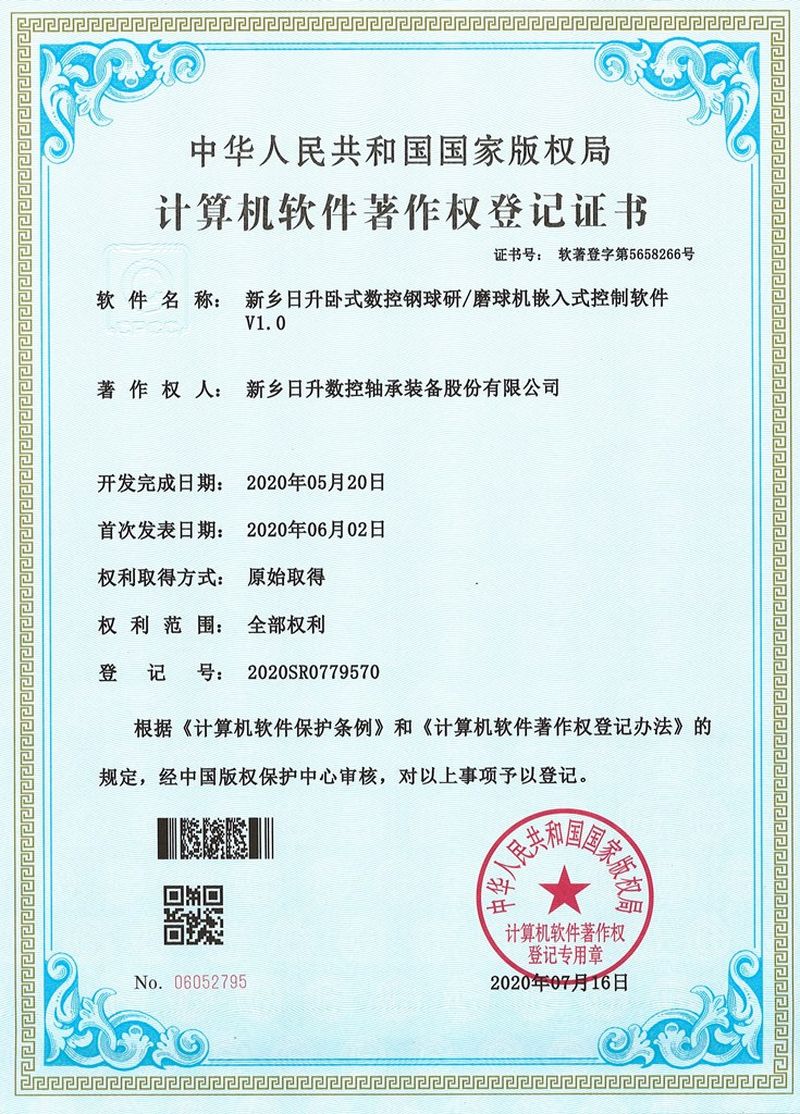 近日,我公司的“新鄉(xiāng)日升臥式數控鋼球研/磨球機嵌入式控制軟件 V1.0”獲得國家版權局“計算機軟件著作權登記”。至此,公司共有17項計算機軟件著作權在國家版權局登記。