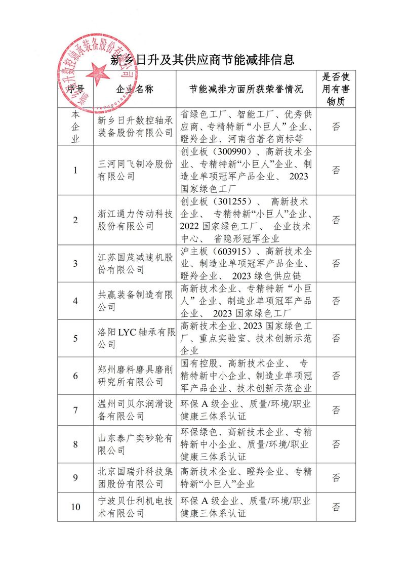 新鄉(xiāng)日升-供應商節(jié)能減排信息